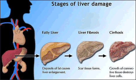 Decompensation means the liver can no longer carry out its normal functions. Impaired blood flow through the increasingly damaged organ can cause portal hypertension, or increased pressure in the portal vein, leading to symptoms such as bleeding varicose veins in the esophagus and ascites, or accumulation of fluid in the abdomen.